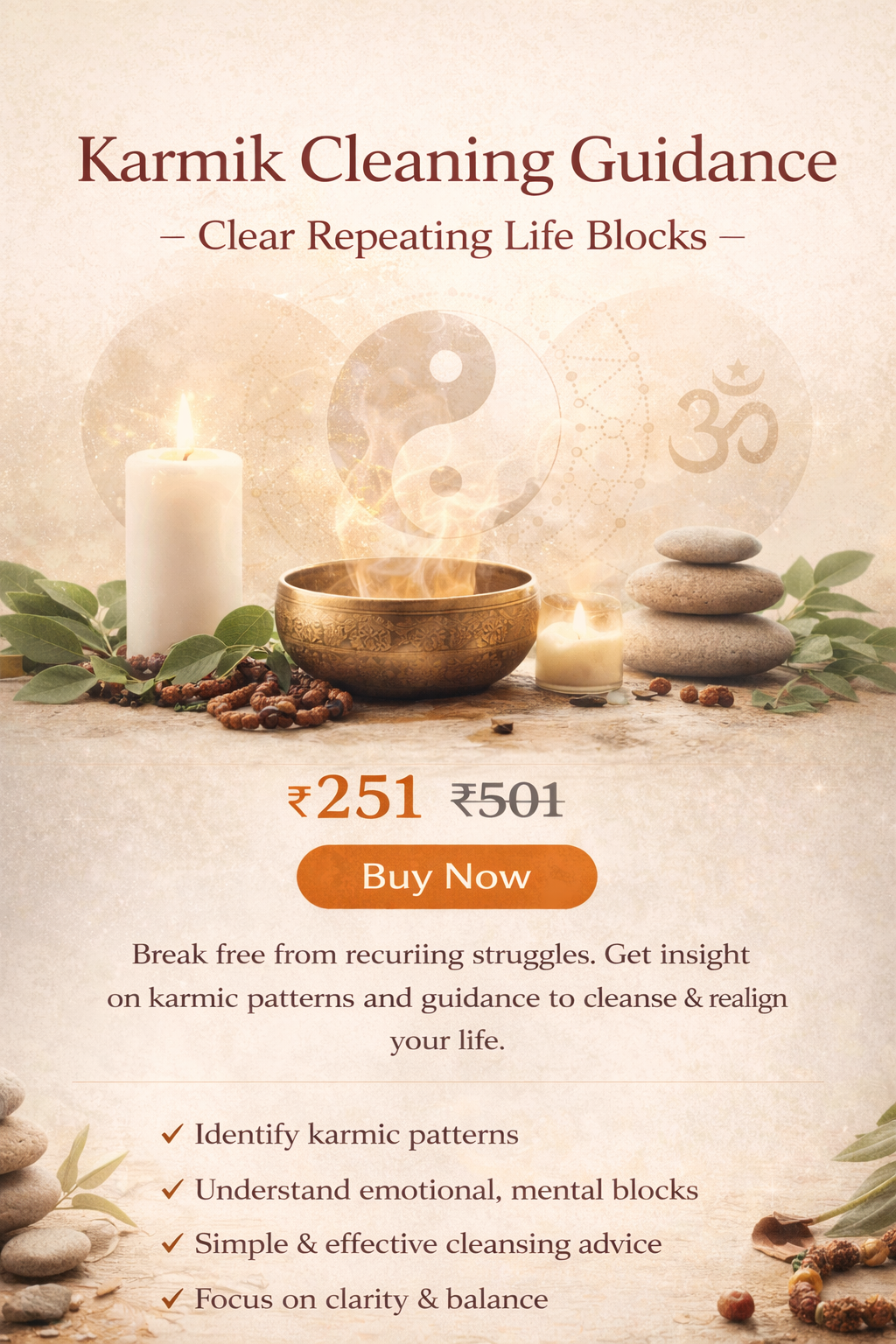 Using Vedic astrology, this guidance focuses on identifying karmic blocks, emotional baggage, and subconscious patterns reflected in your birth chart. The aim is not prediction, but awareness and correction.
